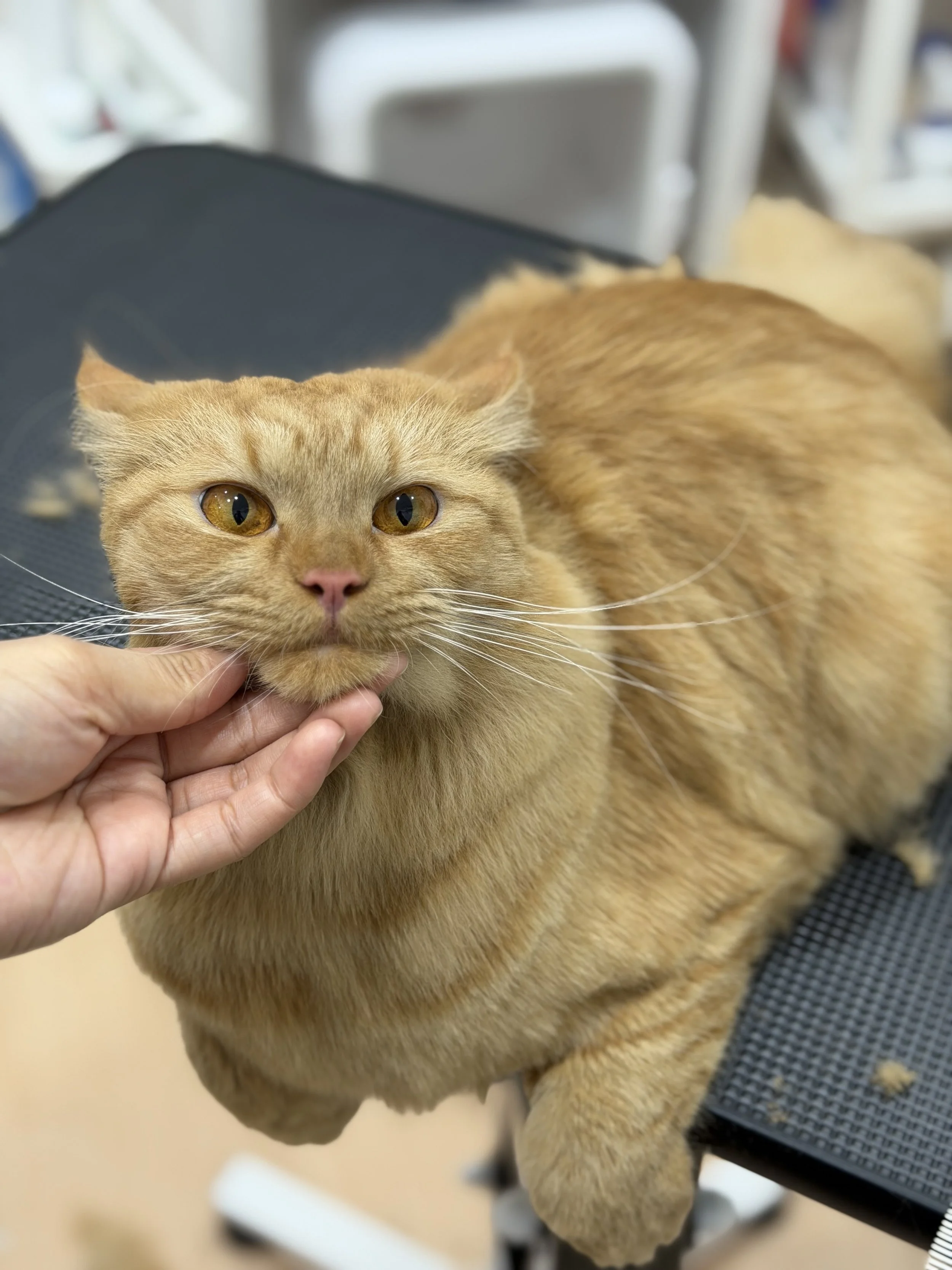Checking for matting, undercoat, parasites such as fleas & ear mites